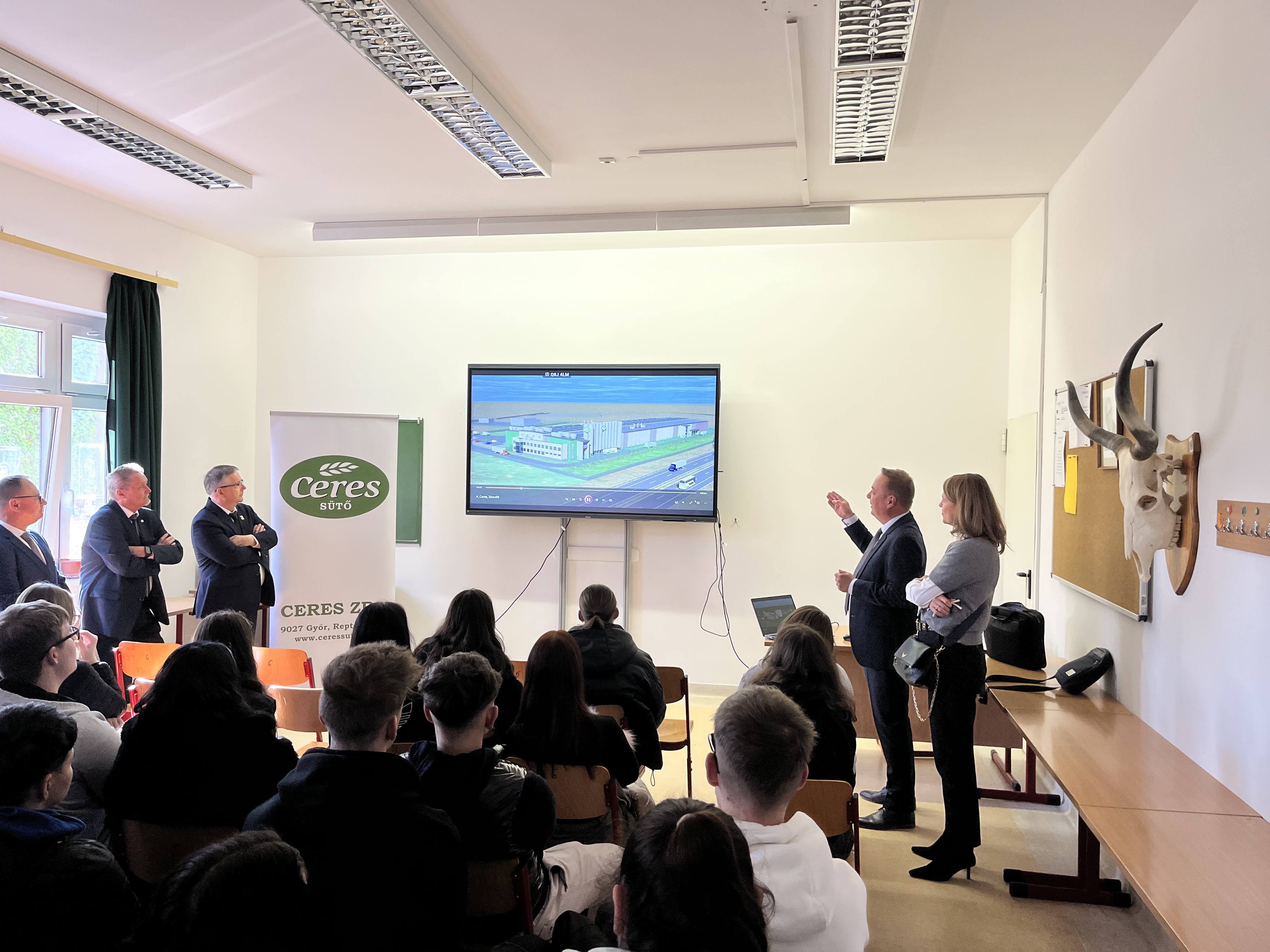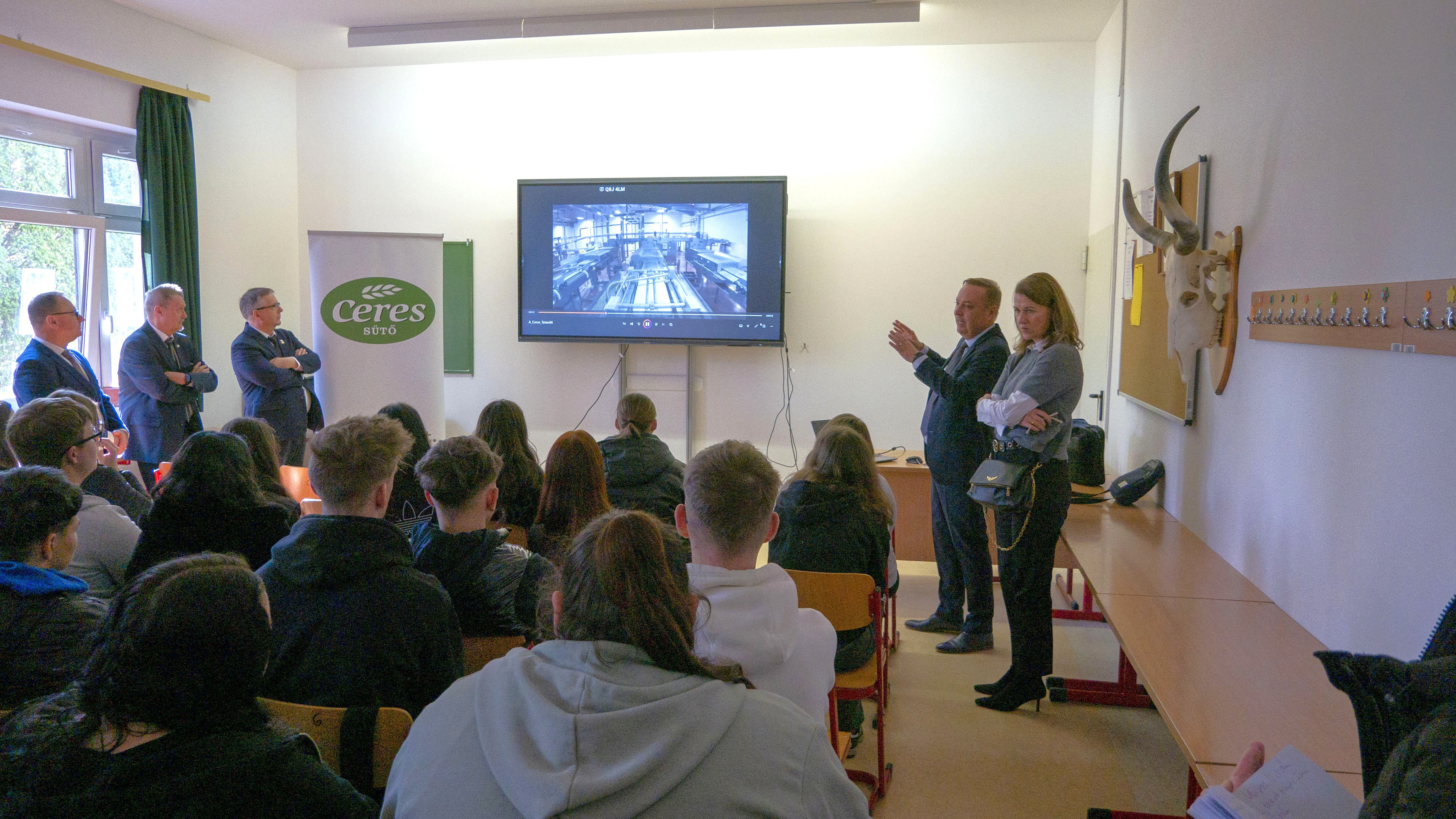 Az átadás után Mikos István tájékoztatót tartott a diákok számára a Ceres Sütőnél elérhető szakmai életpálya-lehetőségekről és a duális képzési programokról.